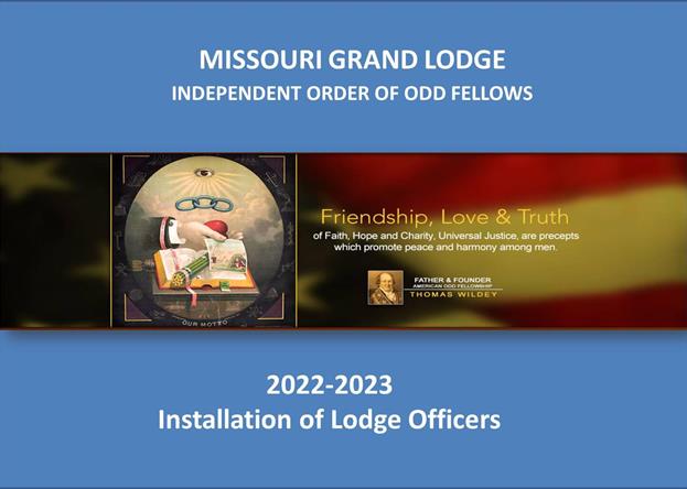Installation of officers was held for the Grand Lodge of Missouri and Rebecca's Assembly of Missouri for 2023-2024. The following individuals were installed as elected officers to the Grand Lodge of Missouri.